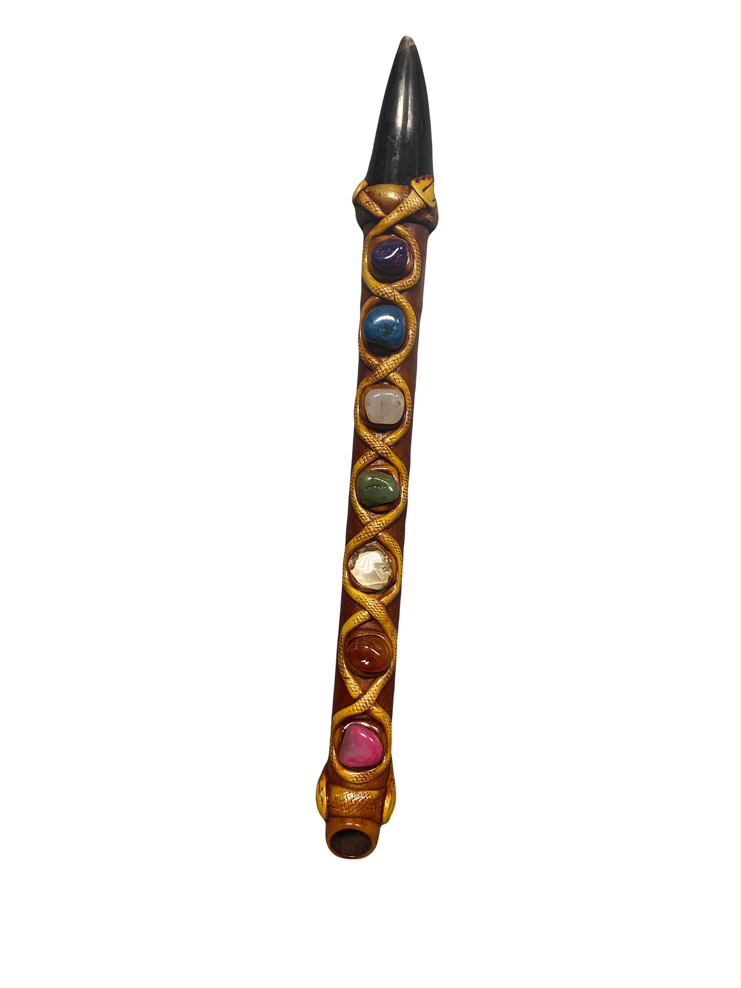 Adorned or inspired by the 7 chakras, these pipes may feature symbolic carvings, color accents, or natural materials aligned with the energy centers of the body. Whether used for ceremonial purposes, meditation, or personal reflection, this piece serves as a functional tool and sacred object.