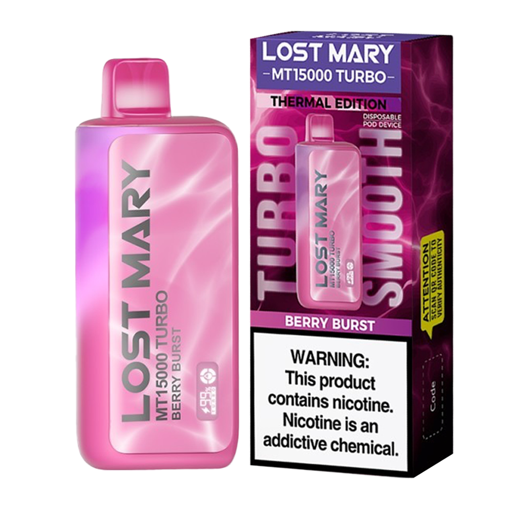 The Lost Mary MT15000 Turbo is a high-performance disposable vape built for flavor, power, and longevity. It offers up to 15,000 puffs in Smooth Mode (11W) or around 7,500 puffs in Turbo Mode (22W), giving users the choice between long-lasting use or bigger clouds.